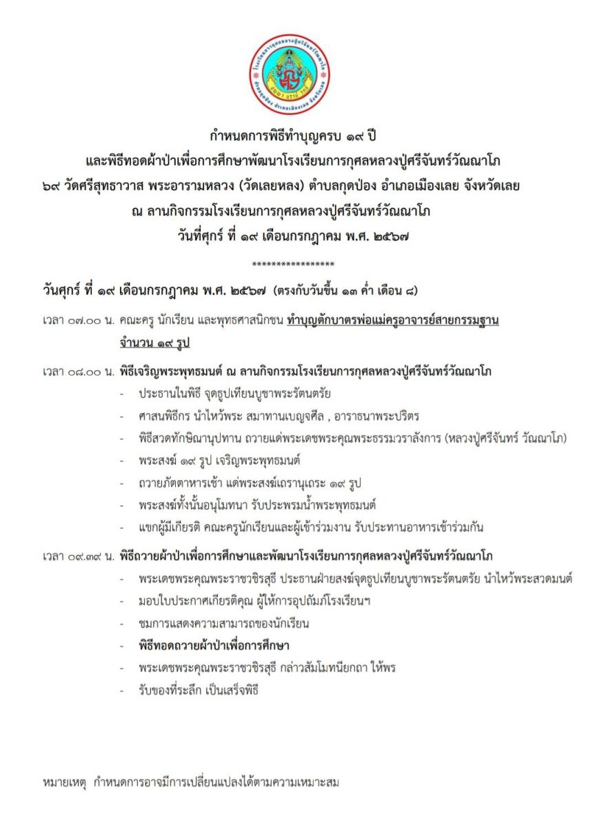 งานทำบุญครบรอบ 19 ปี โรงเรียน